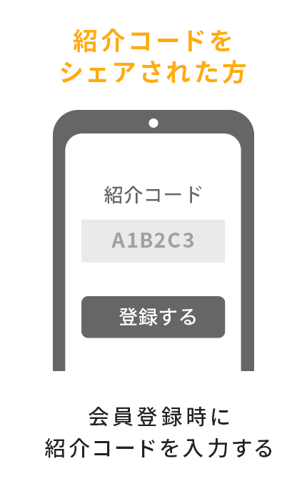 - ・紹介コードを入力せずに会員登録を行われた場合、後から適用する事はできません。
